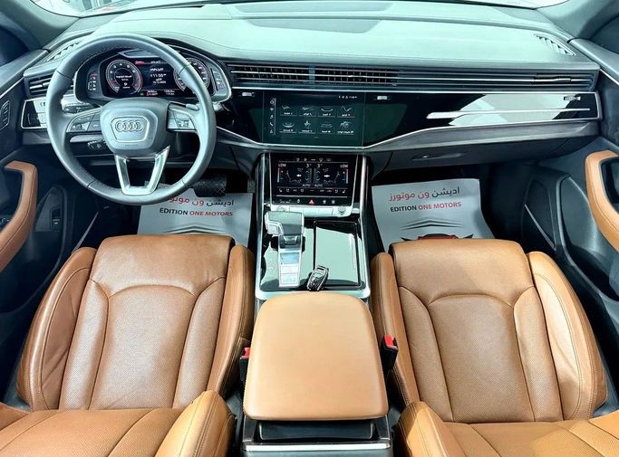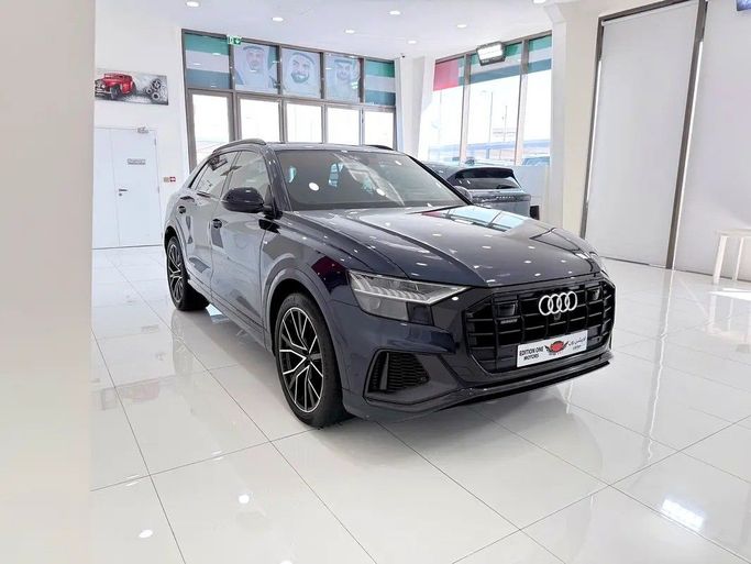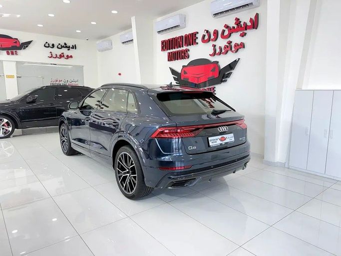 This is a 2023 Audi Q8, Facelift, generation I (4M), five-door SUV in blue, modification 340 hp (55 TFSI / 3.0). The engine is a 3.0 TFSI petrol with quattro all-wheel drive and automatic transmission. The GCC specification highlights the regional nuances of the configuration. The car has had one owner and has a mileage of 75,000 km. It combines dynamics and comfort, featuring a spacious, thoughtfully designed interior and a modern exterior design of a large crossover, along with smooth running and confident handling in daily operation. - Year of production: 2023 - Mileage