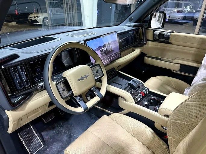 BYD Leopard 5 2025 Ultra Edition Body: 5 doors, 5 Seats, SUV Engine: 1.5T 680 hp L4 transmission: E-CVT Front tire specifications 275/55 R20 Rear tire specifications 275/55 R20 Tire pressure display Central differential locking function Differential lock on the front axle Remote key fob LED daytime running lights Multi-function steering wheel HUD head-up size Tow hitch Induction wiper function Panoramic sunroof can be opened Front/rear power windows The central control screen size is 15.6 inches The size of the passenger entertainment screen is 12.3 inches