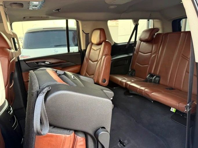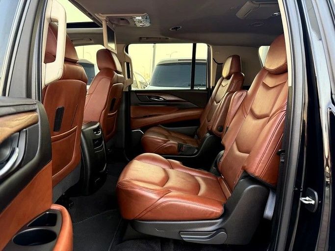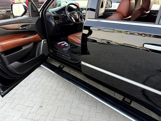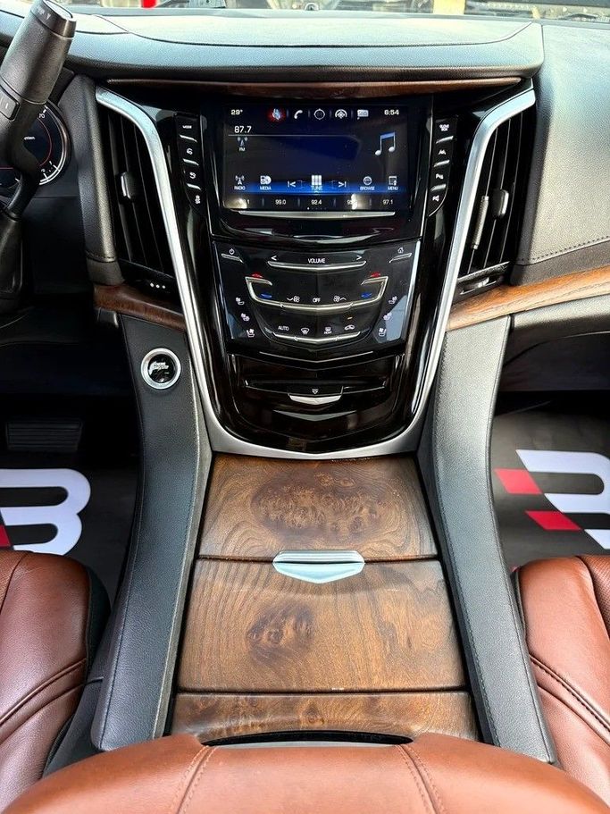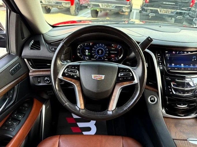 This 2020 Cadillac Escalade L Platinum in black is a used full-size SUV powered by a 6.2-liter V8 delivering 409 horsepower, paired with an eight-speed automatic and all-wheel drive. GCC specs, one previous owner, and an odometer reading of 159,000 mark it as a well-used, capable option in the segment. The Escalade’s bold stance and refined finish make a strong visual impression while offering the kind of presence that suits both daily needs and longer journeys. The 6.2-liter V8 provides confident, responsive acceleration, with the smooth eight-speed automatic handling shi
