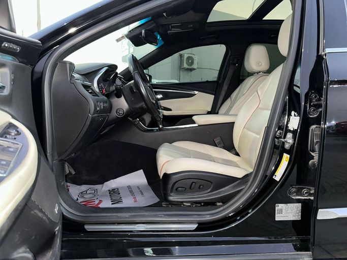2019 Chevrolet Impala, Generation X, a full-size sedan finished in black and set up for GCC markets. Under the hood sits a 3.6-liter V6 delivering 309 horsepower, paired with an automatic transmission and front-wheel drive. The petrol powertrain offers strong, confident acceleration and steady daily usability, while the GCC specification reflects regional considerations. This car has had one previous owner and has covered 218,000 kilometers. Inside, the Impala emphasizes space and comfort. The cabin feels calm and accommodating, with ample rear legroom and a large trunk th