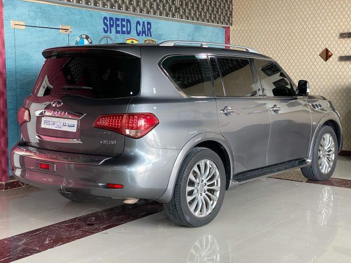 This 2017 Infiniti QX80 I Facelift 2 is a one-owner GCC-spec SUV in grey, powered by a 5.6-liter petrol V8 delivering 405 hp and paired with an automatic transmission and all-wheel drive. The full-size, five-door design provides a spacious interior suited for family use and long trips, offering a refined ride and confident highway presence thanks to the V8 power and AWD. With around 140,000 kilometers on the odometer, it represents typical use for its age while remaining a durable, capable option in the luxury SUV segment. The GCC specification reflects regional tuning desi