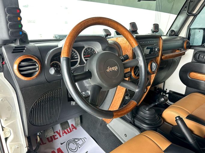 White 2010 Jeep Wrangler JK, a compact three-door SUV with a strong, recognizable stance. It runs a 3.6-liter petrol V6 rated around 284 horsepower and is paired with an automatic transmission that shifts smoothly in daily use and over rough terrain. The all-wheel-drive setup enhances grip in varied conditions, while the GCC-spec tuning suggests equipment tailored for reliable performance across the region. The combination of rugged chassis and a shorter wheelbase gives the Wrangler its signature agility and capability, both on city streets and off the beaten path. Inside,