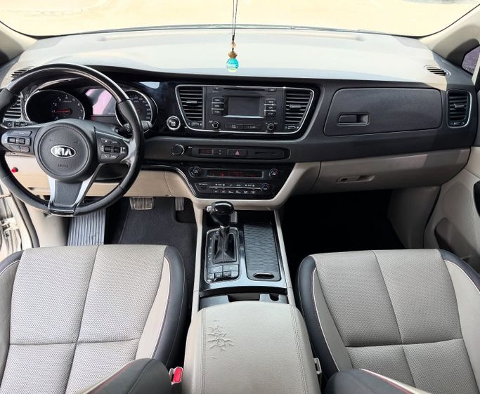 Kia Carnival 2016, third generation, silver minivan with front-wheel drive and automatic transmission. Under the hood is a 3.3-liter gasoline engine with 280 hp, ensuring confident dynamics and smooth operation in the city and on the highway. The vehicle has a neat history - one owner, with a mileage of about 268,000 km, which provides clear and predictable performance for a car of this class. The car combines comfort and practicality with a spacious interior, flexible layout, and reliable technical base. The service condition aligns with years of use, reflecting careful ha