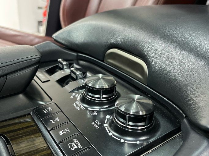 Lexus LX III Facelift 2, built in 2021, is a large premium SUV with a five-door body and all-wheel drive. Under the hood, it features a 5.7-liter V8 petrol engine that delivers 367 hp, combining power with the smooth operation of an automatic transmission. This model showcases an elegant black body color and reflects the LX's traditional emphasis on comfort and durability, which is evident in the overall density and neat aesthetics of the interior. With a mileage of approximately 223,000 km, it has a serious history, but having one owner and a reasonable service record sugg