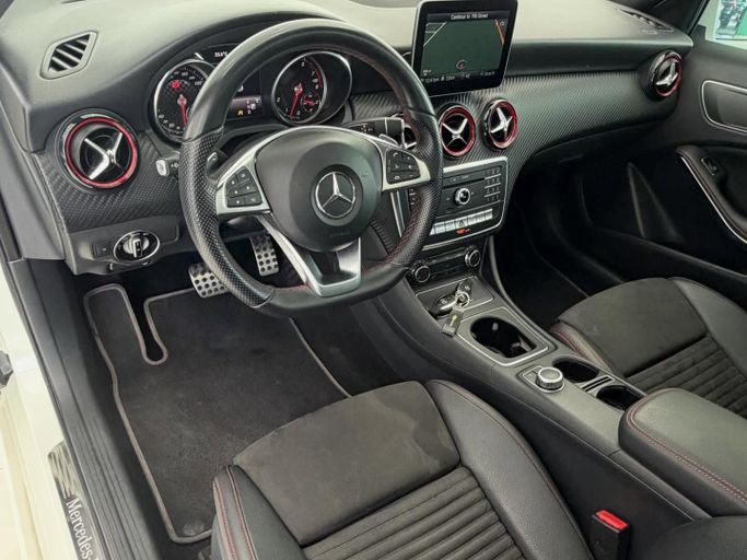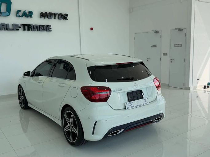 This 2018 Mercedes-Benz A-Class, W176 Facelift, is a white five-door hatch that blends compact practicality with premium styling. It runs a 2.0-liter petrol engine delivering 211 horsepower, paired with an automated manual transmission and front-wheel drive, offering confident torque and smooth everyday use. With GCC specifications, a single-owner history, and around 106,000 km, it presents a well-kept balance of efficiency and performance. The facelift brings subtle styling updates and a more modern cabin feel, while the compact footprint and refined ride make it comfortab