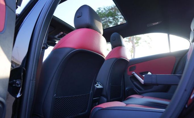 MERCEDES BENZ A200 . 2023 . 44,000KM . GCC . DEALER WARRANTY AND SERVICE CONTRACT The Mercedes A 200 Model 2023 has a 1.3-liter turbocharged engine with 163 horsepower, a 7-speed automatic transmission, and a MacPherson strut front suspension. It can accelerate from 0-100 km/h in 8.2 seconds and has a top speed of 225 km/h. Safety features include multiple airbags, electronic stability control, lane departure warning, and blind spot monitoring.