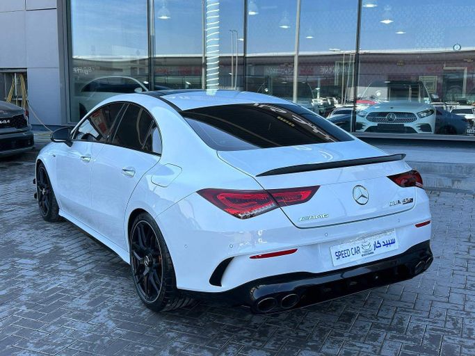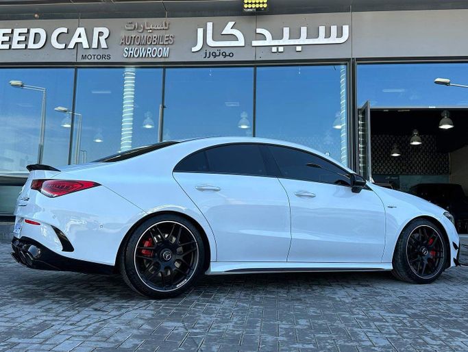 New 2022 Mercedes-Benz CLA AMG II (C118/X118) sedan in White, powered by a 2.0-litre turbo petrol engine delivering 421 hp and tuned to the 45 AMG S specification. It uses an automated manual transmission (AMT) paired with all-wheel drive (AWD) for responsive acceleration and balanced handling. Built on the 45 AMG S base, this GCC-spec model blends performance with everyday usability, offering keen throttle response, precise cornering, and a refined ride. Inside, the driver-focused cockpit features supportive sport seats, digital instrumentation, and MBUX connectivity, whil