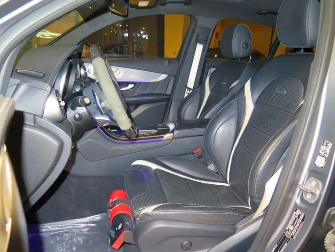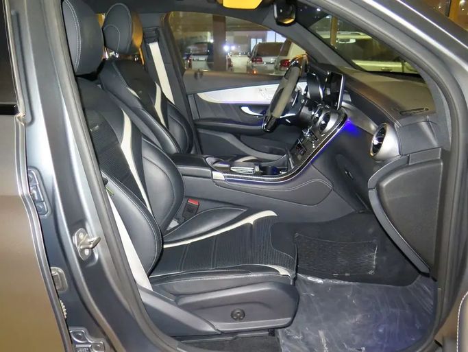 2020 Mercedes-Benz GLC Coupe AMG (C253 facelift) in grey, a used, single-owner model configured for GCC markets. The heart is a 4.0-liter biturbo V8 tuned to about 510 hp, paired with a 9-speed automatic and all-wheel drive, delivering strong on-road performance with confident grip across conditions. Its five-door SUV‑coupe body combines a striking, low-slung profile with practical space and a driver-focused interior, enhanced by AMG styling cues that underscore its performance character without compromising comfort. Inside, the cabin offers a refined environment with moder