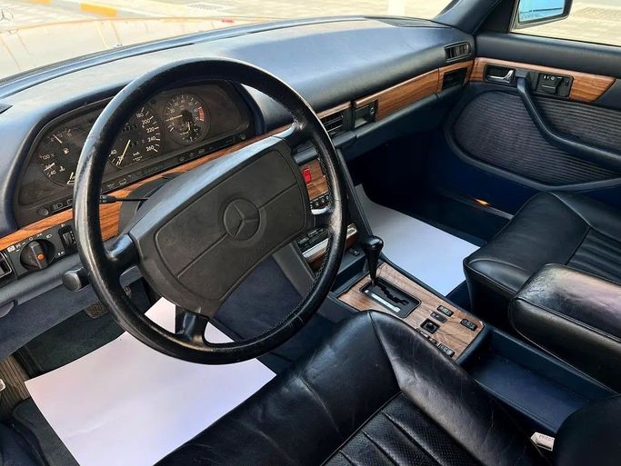 The Mercedes-Benz S-Class W126 Facelift, a 1988 sedan, offers a combination of a powerful 5.5-liter V8 engine and a smooth rear-wheel drive automatic transmission. The 560 modification develops 272 hp, ensuring confident acceleration and a comfortable ride on the highway while maintaining the characteristic peace and quiet of the cabin. The black exterior emphasizes restrained elegance and features a classic body line that remains relevant over time. The Japanese regional specification and the presence of a single owner, with a mileage of about 117,000 km, indicate the safe