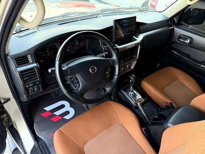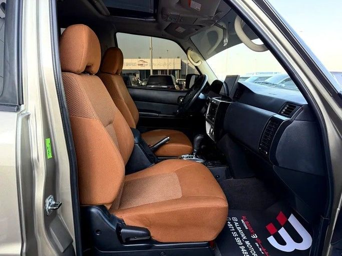 This 2021 Nissan Patrol Safari Super Safari is a used, single-owner example finished in a warm golden tone. The three-door SUV is powered by a 4.8-liter petrol V8 producing 245 horsepower, paired with an automatic transmission and all-wheel drive. The GCC-spec configuration reflects regional engineering and equipment, and the golden finish gives it a refined, unmistakable presence. With around 99,000 kilometers on the odometer, it shows steady use rather than heavy wear. On the road, the 4.8-liter V8 offers ample low- and mid-range torque for confident highway cruising, w
