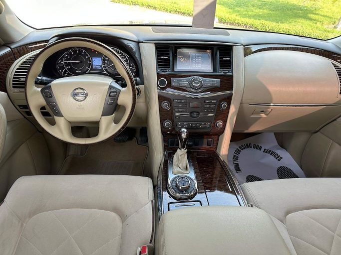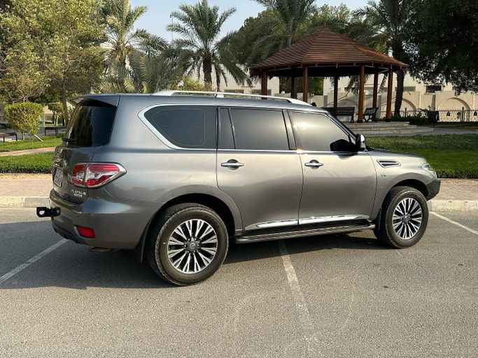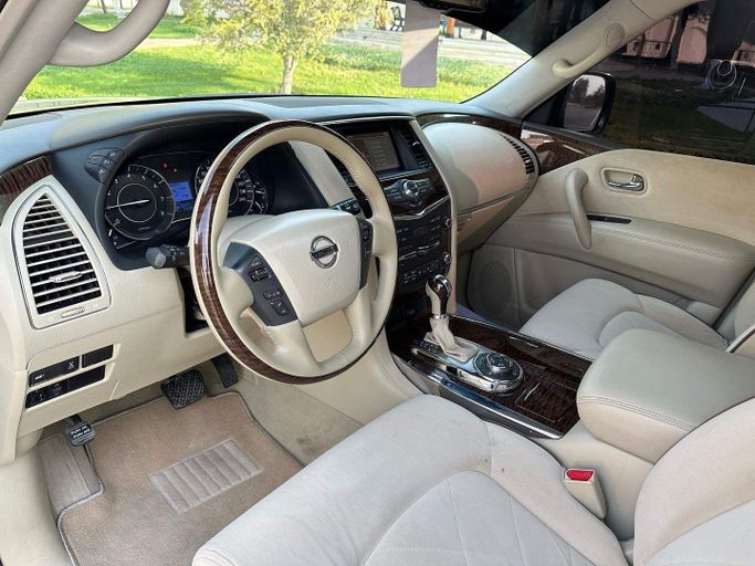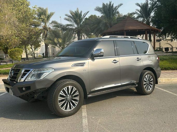 This 2014 Nissan Patrol VI (Y62) is a used, five‑door SUV finished in grey. It pairs a 5.6‑liter petrol V8 with 405 horsepower to an automatic transmission and all‑wheel drive, offering strong on‑road performance and confident capability off road when needed. The large displacement under the hood translates to steady torque for overtaking and easy highway cruising, while the AWD setup helps maintain traction in varied conditions. Inside, the Patrol provides a roomy cabin and practical layout designed for everyday practicality and long journeys, with flexibility for passenge