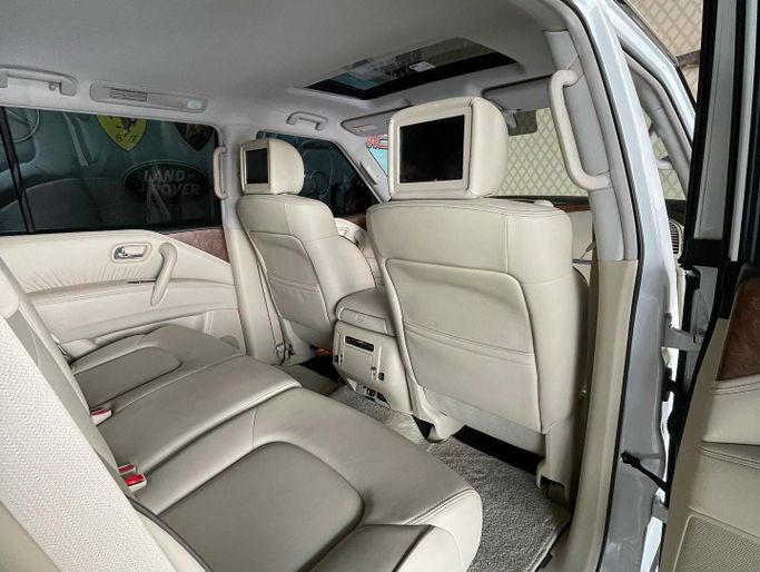 This used 2020 Nissan Patrol VI (Y62) Facelift 2 is a white, five-door SUV powered by a 5.6-liter petrol V8 producing 428 hp, paired with an automatic transmission and all-wheel drive. Built to GCC specs, it handles regional conditions with ease while delivering a composed, powerful on-road and off-road performance. It comes from a single owner and has about 57,000 km on the clock, offering a low-mileage example with ample capability. The interior emphasizes space and comfort for daily use and longer trips, and the rugged chassis provides confident handling across diverse r