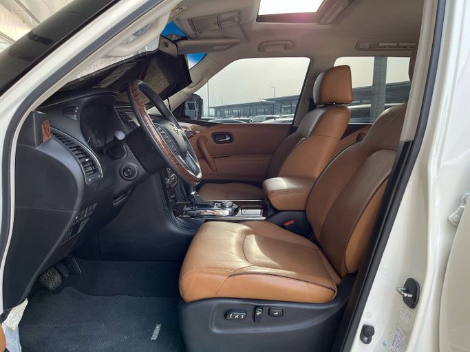 This 2016 Nissan Patrol VI (Y62) Facelift is a white, five‑door SUV powered by a 5.6‑litre V8 delivering 428 hp, paired with an automatic transmission and all‑wheel drive. With GCC specifications and a single prior owner, it sits at about 150,000 km and combines strong on‑road performance with proven off‑road capability. The Patrol offers a spacious, comfortable interior that suits daily use and longer trips alike, backed by a sturdy build and confident highway manners. It’s a practical choice for those who value power, durability, and versatile capability in a full‑size SU