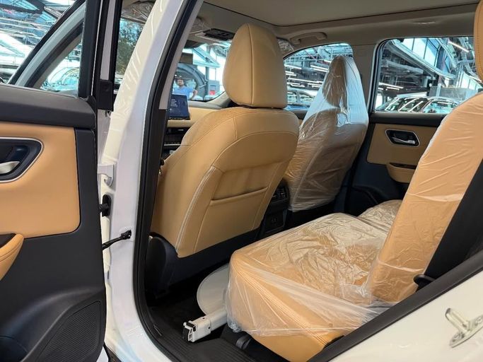 Nissan Xtrail SL Full Model : 2025 Specs : 4 cylinders Engine 2.5 181 horsepower Automatic CVT Khair Four wheel drive system 7 seater Fuel consumption 15.4 excellent rating The capacity of the fuel tank is approximately 50 liters. LED lights 4 frontal senses Size 19 aluminum rails Folding side mirrors Door knobs in burgundy color Smart entry My rear fins The 4 senses behind the scenes Remote operating Automatic bear opening with a key LED back light Leather seats in saffron color Halogen interior lighting Nafiqion screen size 12.3 Supporting car play Surrounding cameras 3
