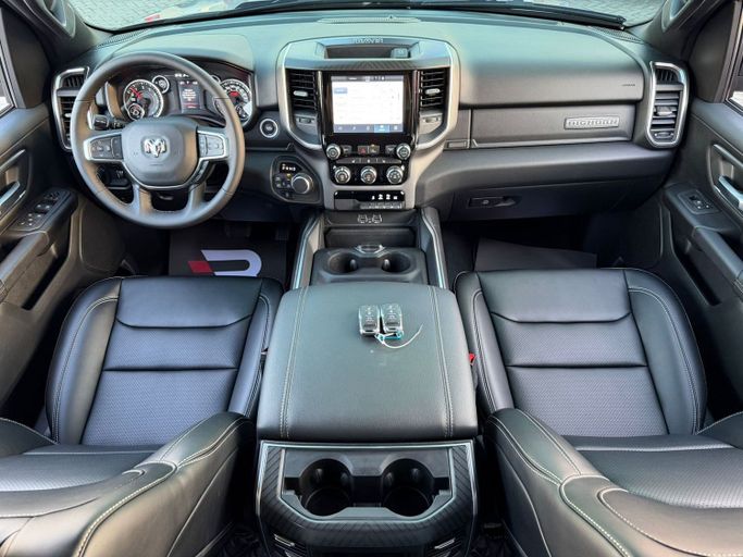 This used 2025 RAM 1500 V Facelift in GCC-spec, a silver double-cab pickup, pairs a 5.7-liter petrol V8 producing 395 hp with an automatic transmission and all-wheel drive for confident performance on varied roads. With a single previous owner and about 8,000 miles on the clock, this truck offers notably low use and strong readiness for daily tasks or weekend adventures. The V Facelift brings contemporary styling and a refined cabin, while the crew cab delivers comfortable seating for four and ample cabin space. GCC-spec ensures regional suitability and equipment aligned wi