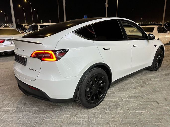 This 2023 Tesla Model Y is a one-owner GCC-spec Long Range Dual Motor SUV in white, with all-wheel drive and automatic transmission. With around 101,000 km on the clock, it offers efficient electric performance combined with everyday practicality. The Long Range dual-motor setup delivers strong, responsive acceleration and confident highway cruising, while the AWD system provides steady grip in varied conditions. Inside, the cabin emphasizes space and comfort for five with flexible cargo capacity, wrapped in a clean, minimalist interior design typical of Tesla. Being GCC-sp
