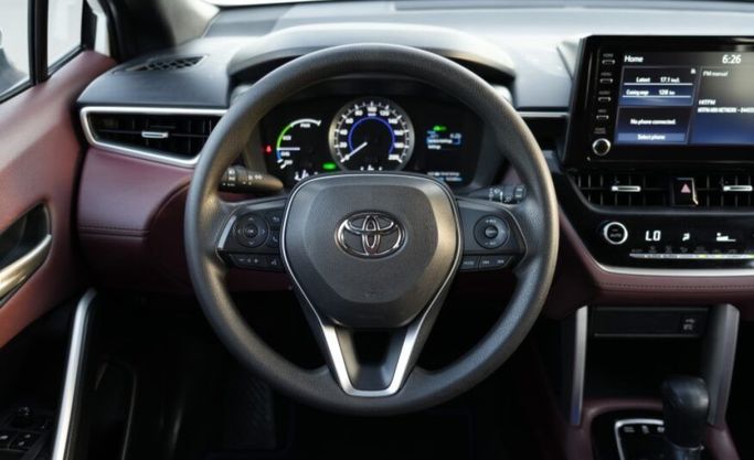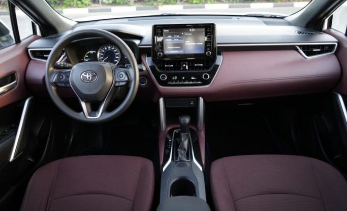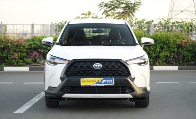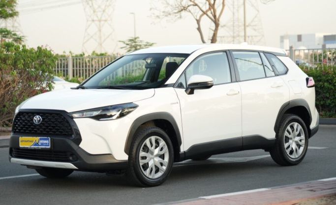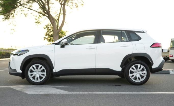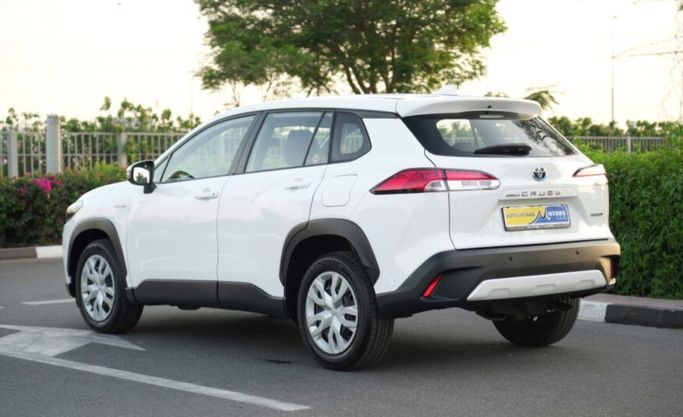 TOYOTA COROLLA CROSS 2022 HYBRID GCC 52,000 KM Engine: 1.8 L inline‑4 petrol + electric motor hybrid (Toyota 2ZR‑FXE) paired with e‑CVT transmission Combined Output: approx. 122 hp (90 kW) and 142 Nm from petrol engine plus about 163 Nm electric motor torque Drive: Front‑Wheel Drive (FWD) only