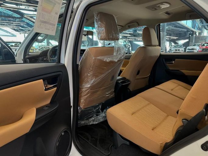 Toyota Fortuner EXR Model : 2025 Specifications : 4 cylinders 2.7 2700cc 164 horsepower The LED light Aluminum rings size 17 Folding side mirrors Door knobs are chrome The 4 senses behind the scenes Fuel consumption 10.4 km per litre Fuel tank capacity 80 liters Saffron fabric chairs Information screen size 8 inches It supports Apple Car Play Control of the population Voice commands and flight counter. Bluetooth Rear air conditioner