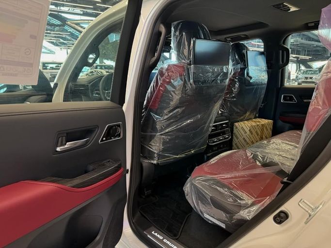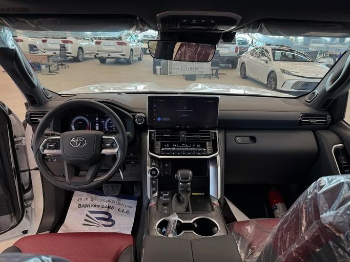 Toyta Land Cruiser VXR twin turbo hybrid Model: 2025 Specifications: 6 cylinder 3.5 twin turbo hybrid engine With a power of 457 horsepower Engine torque 790 Nm Twin turbo engine 409 HP Electric motor 48 hp 10-speed automatic transmission Fuel consumption 10.9 kilos per liter Fuel tank 98 LED lighting 3 lenses Windshield cleaners Headlamps Aluminum rings size 20 Folding side mirrors chrome Remote playback (mobile application) Front and rear sensors Smart entry Derailment alert system (with handlebar vibration) Pre-Collision Safety System Blind spot Wrenches Rear wing Elec