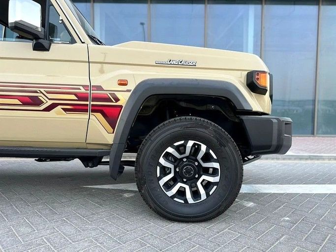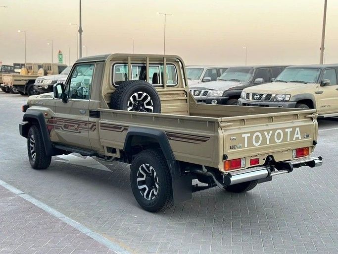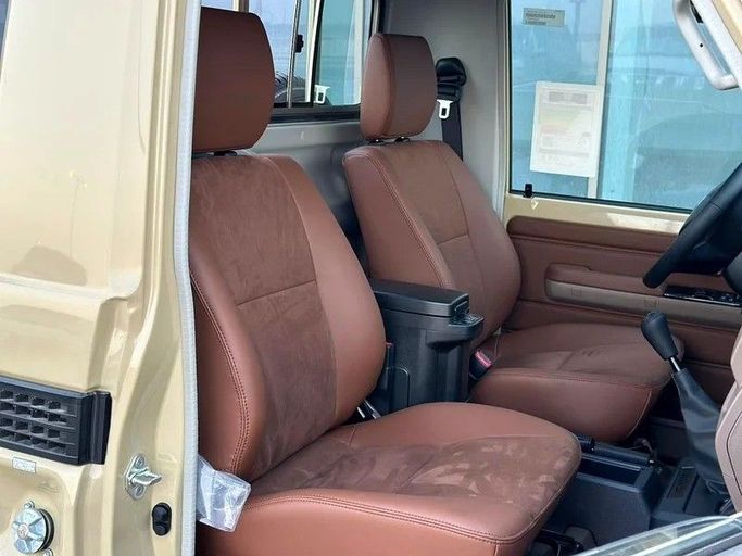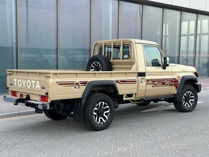 The 2025 Toyota Land Cruiser 70 Series Facelift 2 arrives in a practical beige finish as a new GCC-spec single-cab pickup. Under the hood sits a 4.0-liter petrol engine delivering 228 horsepower, paired with a manual transmission and all-wheel drive, designed to provide steady, controlled power on varying terrains and in everyday work duties. The combination emphasizes reliability and a straightforward driving experience, with the rugged stance that characterizes the 70 Series. Designed for capability and durability, this facelift 2 gains refreshed styling cues while prese