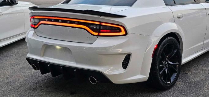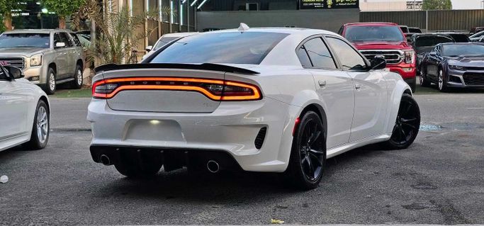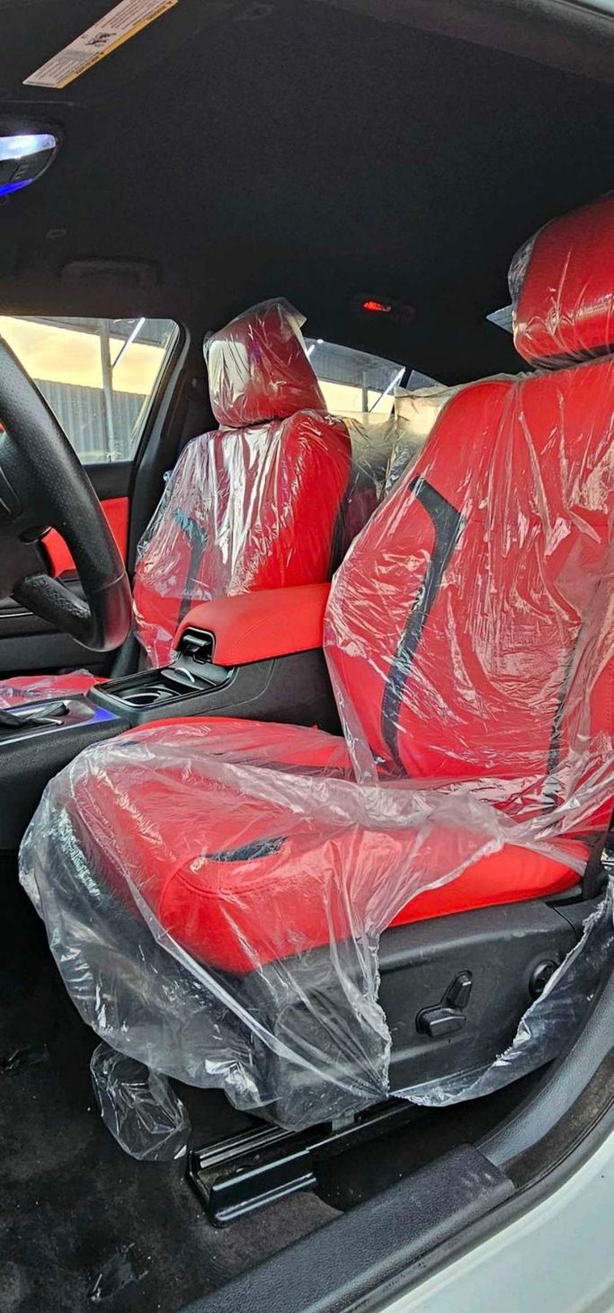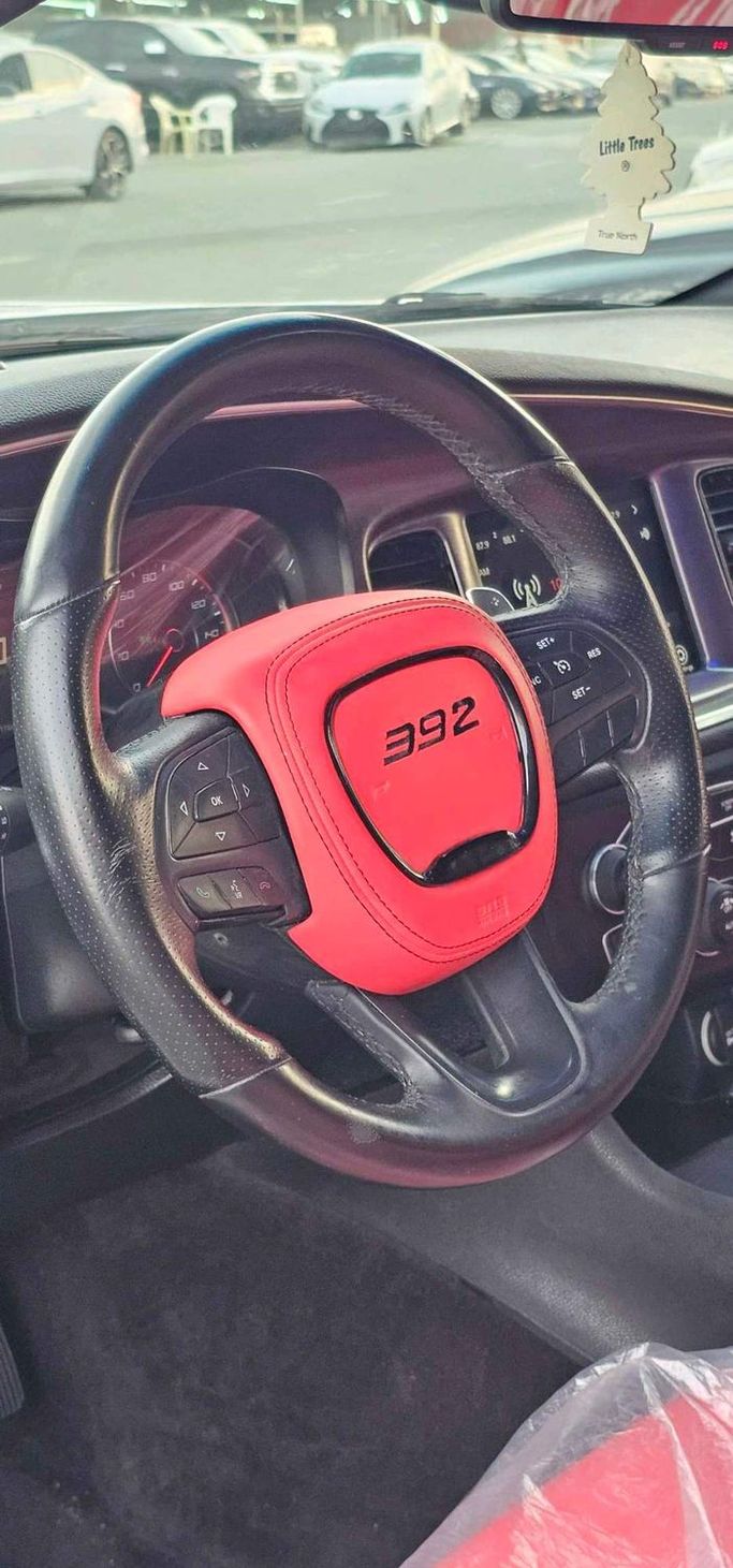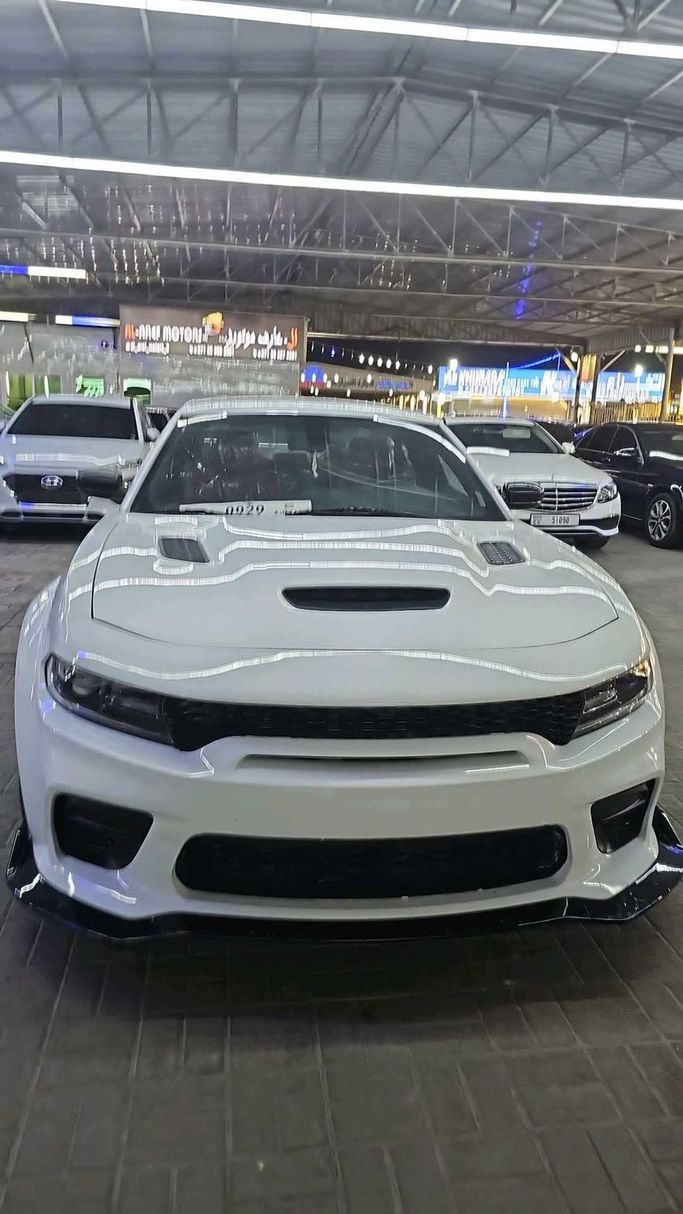Doug Garger V8 Hemi GT American import, white body. We add a very distinctive interior, original rims, and a 5.7 cc engine. The car is in excellent condition. Nidam Sport supplies the original audio system from the dealership. For sale in Ajman, Al Jurf Car Market, Al Aref Showroom.
