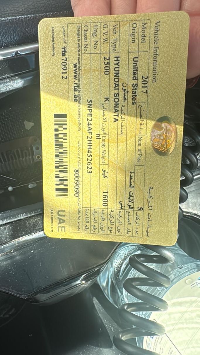 هيونداي سوناتا موديل 2017 مواصفات امريكية بحالة ممتازة جدا استخدام حرمة حادث بسيط جدا رفراف يمين قير شاسيه مكينة فحص ناجح ماشية 200 الف مايل السعر صيدة فقط 13500 درهم (0561300393)