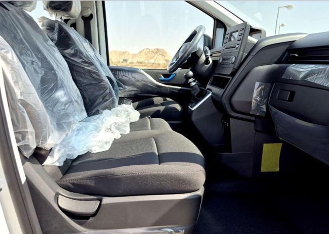 New 2026 Hyundai Staria van in white with GCC specifications. It is powered by a 2.2-liter diesel delivering 177 horsepower, paired with a manual transmission and front-wheel drive for direct response and predictable handling in urban and highway driving. The cabin offers practical comfort with a flexible seating and cargo layout, straightforward controls, and thoughtful storage to suit family use or light commercial needs. The exterior design reflects Hyundai's modern van philosophy with clean lines and a balanced silhouette that stays versatile in various settings. The co