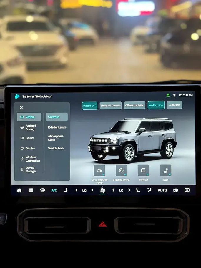 Jetour T2 Premium – Top Trim 2025 | Zero Accidents | Best Price Main Features: • Travel Plus – Highest trim level of the Jetour T2 • Leather seats with full electric adjustment • Pilot-style comfort seat • Premium Sony sound system • Multi-color ambient interior lighting • 7 driving modes • 360° camera system • High-precision front & rear parking sensors • Radar + Adaptive Cruise Control + Smart Lane-Keeping • Crystal 8-speed gearbox • Rear spare-wheel cover • Rear power outlet • Wireless + Type-C phone charging • Full vehicle settings control through the cen