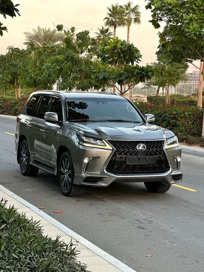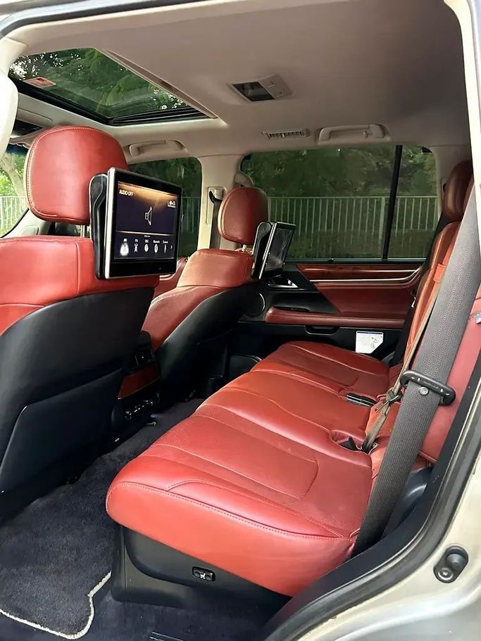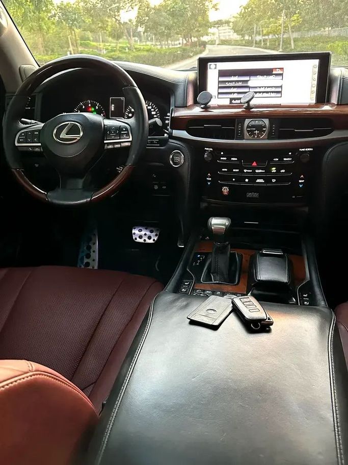 Lexus LX 570 S Model: 2018 V8/5.7L GCC Specs Hydraulic, fingerprint, leather, sunroof, 4-wheel drive, differential lock, 4-wheel drive, rear screens, electric windows, blind spot detection, remote start , 360° cameras heated and cooled seats, steering wheel control, audio systems, refrigerator, anti-slip, collision mitigation, touch screen, GPS, electric seats, seat memory, rear climate control.