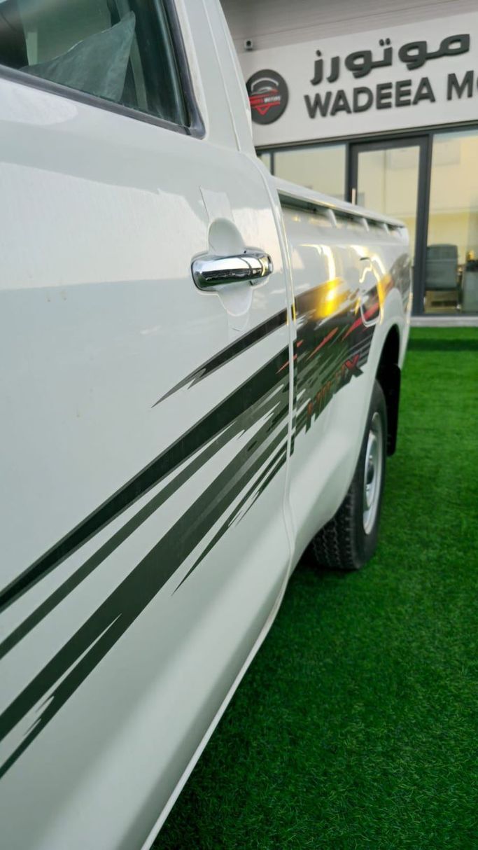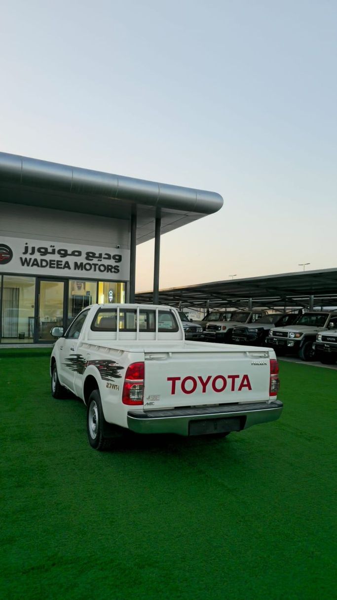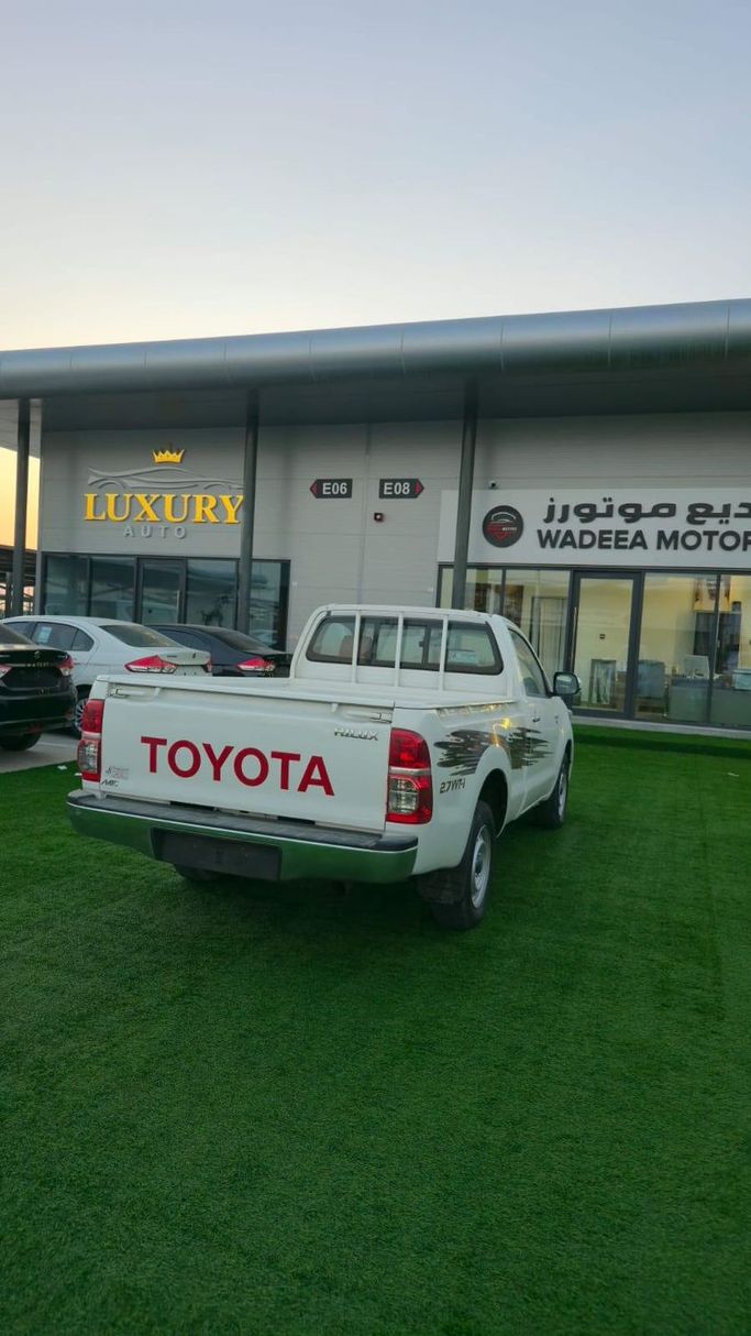 هذه تويوتا هيلوكس من الجيل السابع خليجي، موديل واجهة Facelift، كابينة مفردة ولوحة ألوان بيضاء أنيقة، بمحرك بنزين سعة 2.7 لتر بقوة 163 حصان وناقل حركة يدوي، مع نظام دفع خلفي. سيارة جديدة بمزايا موثوقة للاستخدام اليومي أو الأعمال الخفيفة، تجمع بين بساطة التشغيل وفعالية الأداء مع استجابة جيدة للمناورات والحمولات الخفيفة. التصميم الهندسي يركز على الاعتمادية والقدرة على التحمل، بينما يوفر المقصورة والمقاعد مساحة عملية مع تحكم سلس في السرعة ونقل التعشيق، إضافة إلى طابع GCC Spec الذي يعكس تجهيزات ملائمة للطرق والمتطلبات الإقليمية. بفضل انخفاض المسافة المقطوعة البالغة نحو 2600 كم ك