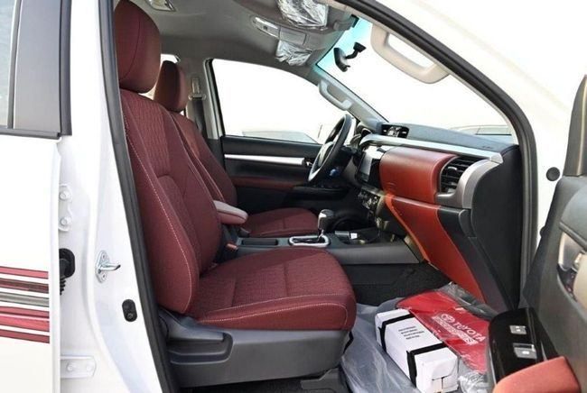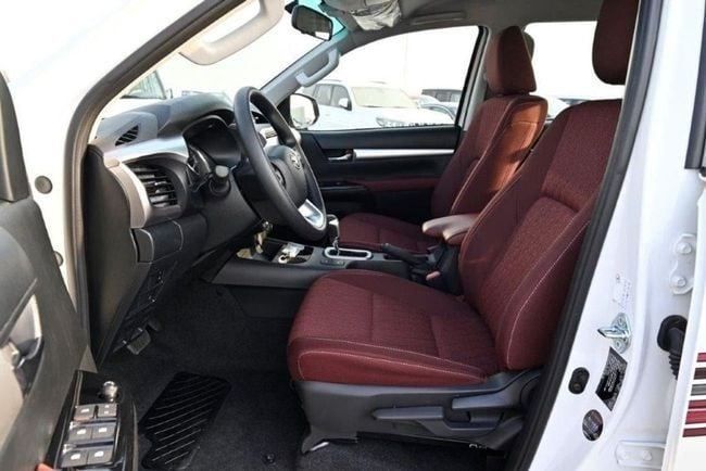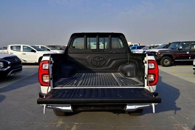 New 2025 Toyota Hilux, VIII Facelift, in white, arrives as a double-cab pickup with GCC specifications and all-wheel drive. It is powered by a 2.7-liter petrol engine producing 166 hp, paired with an automatic transmission for smooth everyday use. The facelift brings a refreshed exterior and a more contemporary interior while preserving the Hilux’s durability and practicality, including a versatile cabin and dependable load-and-passenger utility. With AWD, straightforward technology, and a comfortable ride, it offers a balanced blend of capability and everyday comfort in a
