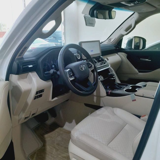 New 2025 Toyota Land Cruiser 300 Series, a five-door SUV in white, blends rugged capability with refined comfort. Under the hood sits a 4.0-liter petrol V6 delivering 275 horsepower, paired with a smooth automatic transmission and all-wheel drive, giving confident performance on highways and through tougher terrain alike. The GCC-spec model is tuned for regional conditions, while the interior offers a comfortable, practical space designed for long journeys and everyday use. Its design reflects a sturdy, timeless silhouette with a high-quality finish, easy-to-use technology,