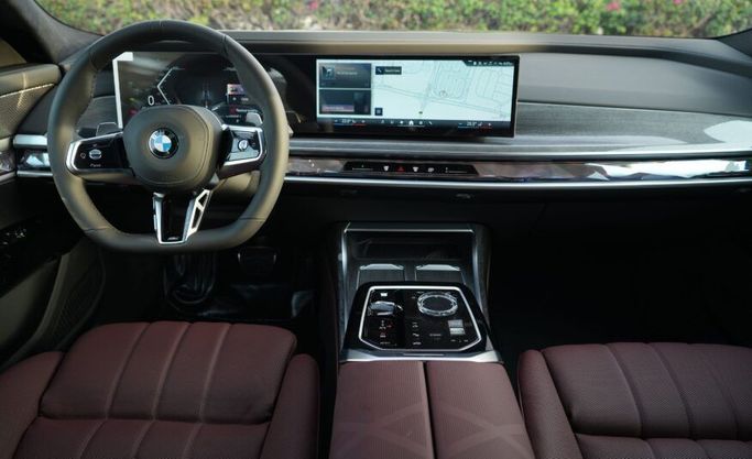 New 2025 BMW 7 Series, generation VII (G70), in black, combines refined luxury with confident performance in a sedan designed for comfort and technology. Under the hood lies a 3.0-liter turbocharged inline-six delivering 380 horsepower, paired with an automatic transmission and rear-wheel drive for poised, engaging handling and a smooth highway ride. Built to GCC specifications, it includes climate control and electronics tailored to regional conditions, ensuring comfort and reliability across varied settings. The base 740i configuration offers a balanced blend of power and