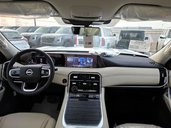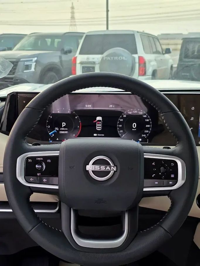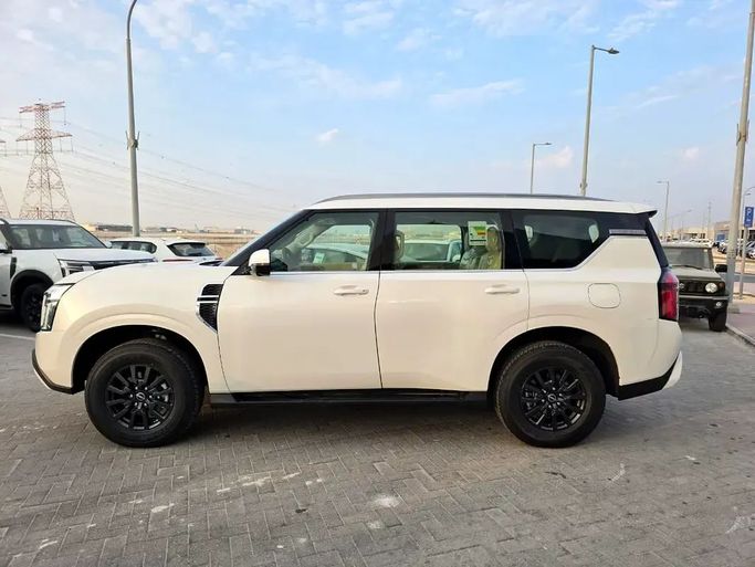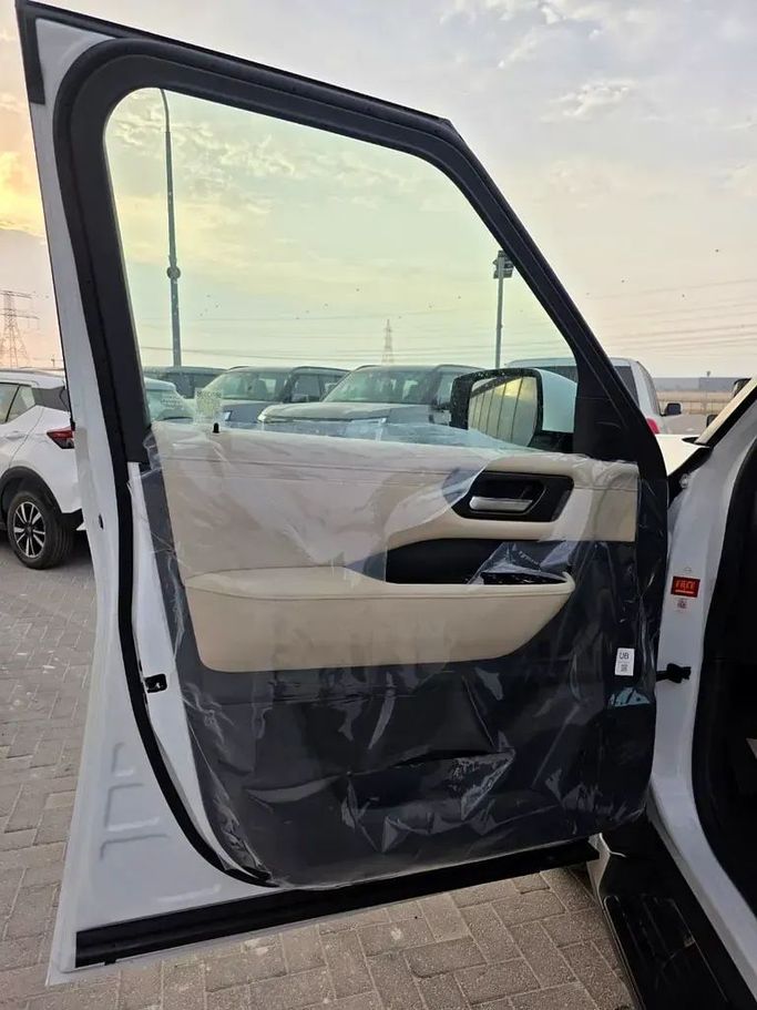 New 2026 Nissan Patrol VII (Y63), a full-size SUV in white, is built to GCC specifications and ready for a range of conditions. It houses a 3.8-liter petrol engine delivering 316 horsepower, paired with an automatic transmission and all-wheel drive for confident performance. The 5-door layout offers a spacious, flexible cabin designed for daily use and longer journeys, while comfort-focused materials and refined sound insulation help every ride feel more relaxed. Its rugged, capable silhouette is balanced by a refined interior and practical technology that supports convenie