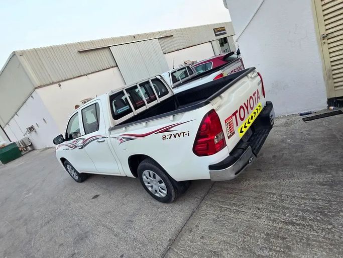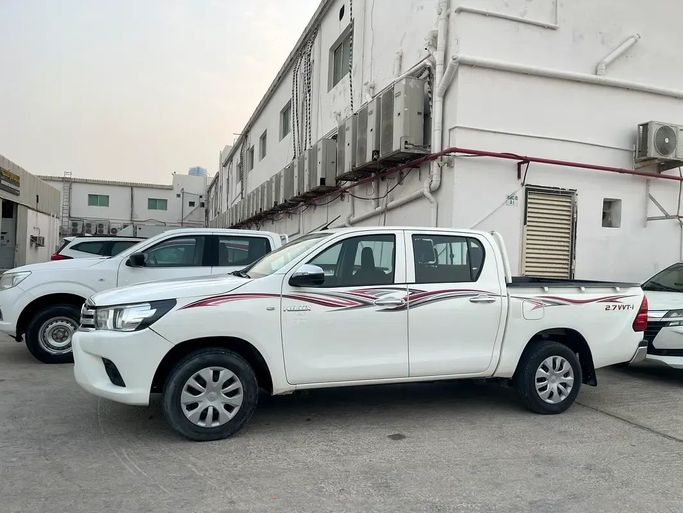 This 2022 Toyota Hilux VIII generation double-cab pickup is finished in white and offered with a single prior owner and about 84,000 kilometers on the odometer. Under the hood sits a 2.7-liter petrol engine producing 164 horsepower, paired with a manual transmission and all-wheel drive, delivering direct response and steady performance across varying terrains. The GCC specification supports hot-region climate and practical use, while the roomy double-cab interior provides seating for five and straightforward controls. With its proven Toyota reliability, simple mechanical pa