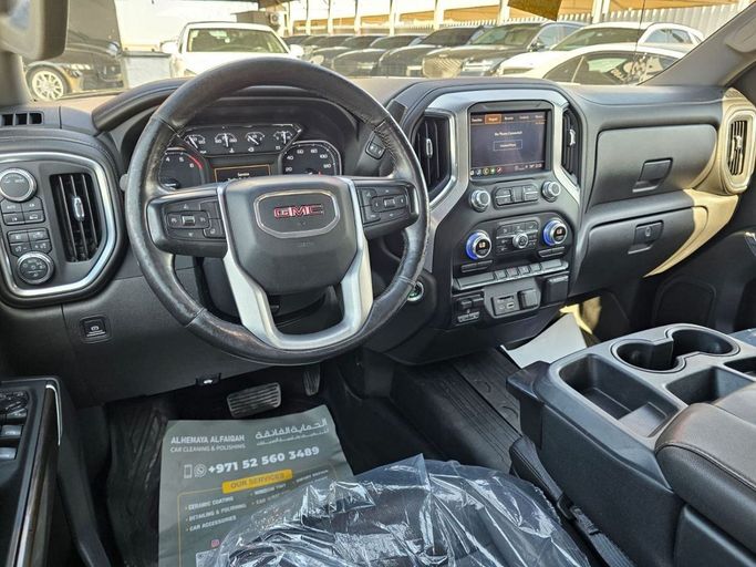 The GMC Sierra 1500 SLT comes equipped with a 5.3-liter V8 engine and a 10-speed automatic transmission, providing 355 horsepower and 383 lb-ft of torque. Features include: - Dynamic Fuel Management (DFM) for improved fuel efficiency - GMC's premium infotainment system with a large center touchscreen - Apple CarPlay and Android Auto compatibility - A premium sound system (such as an available Bose) Interior Comfort: - Rear seat storage compartments - Rear air conditioning vents - A MultiPro™ Tailgate available - A wide range of driver assistance systems