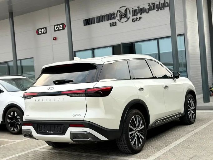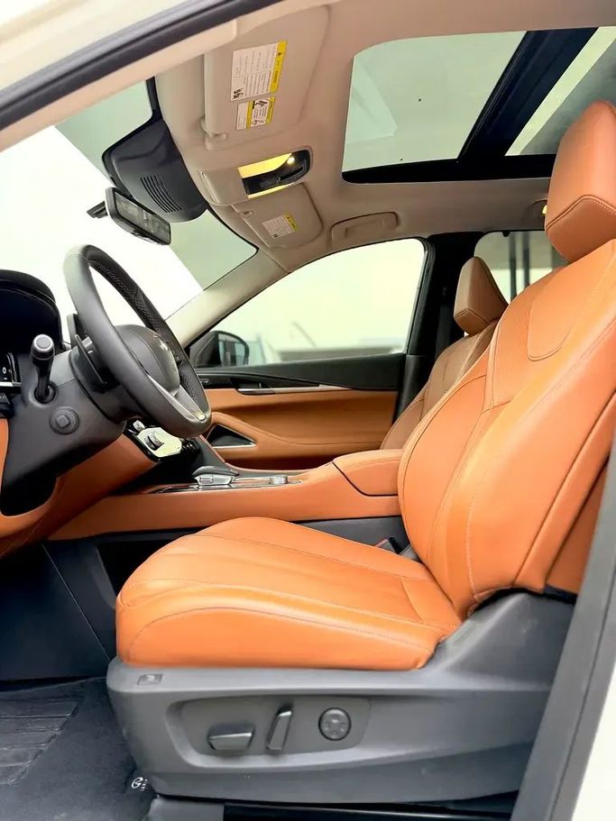 This 2024 Infiniti QX60 II in white presents as a lightly used, one-owner SUV with very low miles—about 1,958 on the odometer. It runs a 3.5-liter V6 producing 279 horsepower, paired with an automatic transmission and all-wheel drive for a balanced blend of performance and confidence in diverse conditions. The GCC-spec model combines Infiniti’s refined design with a spacious interior that seats up to seven, delivering a quiet, comfortable ride and intuitive technology that supports everyday use. With its low mileage and careful upkeep, this QX60 reflects reliability and val