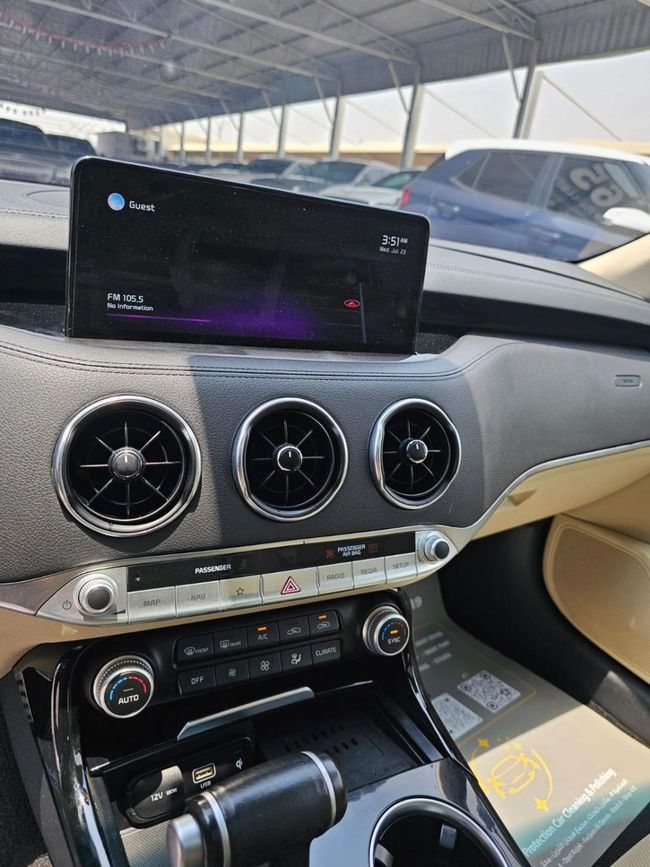 2022 Kia Stinger 4dr Sedan 2.5L 4cyl Petrol Automatic, Rear Wheel Drive The 2022 Kia Stinger is equipped with a 2.5-liter turbocharged four-cylinder engine that produces 300 horsepower and 311 Nm of torque, connected to an 8-speed automatic transmission. It comes with the following specifications: - Spherical motion detection system - ABS anti-lock braking system - Automatic steering control (AUC) - Airbags - Anti-theft alarm - Blind spot alarm - Collision detector - Electronic brake force distribution (EBD) - Lane departure warning - Rear ca