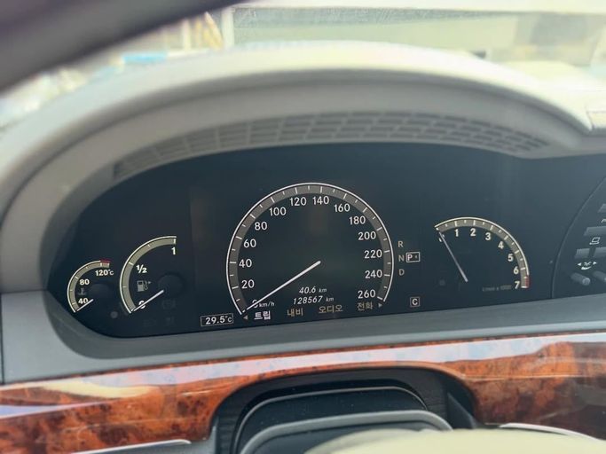 This 2009 Mercedes-Benz S-Class (W221) stands out for its refined balance of comfort and capability. With a 3.5-liter V6 producing 272 hp and smooth automatic transmission, it delivers confident performance while maintaining a composed, quiet ride. Its rear-wheel-drive layout contributes to a classic sedan feel, complemented by a well-appointed interior designed for long-distance comfort. The silver exterior carries a timeless elegance, and with a single previous owner, the car presents a well-kept history. The Korean-spec details add unique regional refinement, while the 1