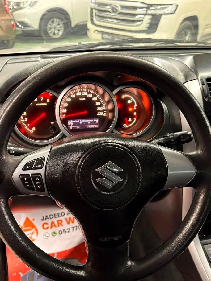 للبيع سوزوكي جراند فيتارا 2016 خليجي فضي بحالة ممتازة. السيارة مزودة بمحرك 2.4 لتر 4 سلندر بقوة تقريبًا 166 حصان وناقل حركة أوتوماتيك مع دفع رباعي، ما يعطي أداء قوي داخل المدينة وعلى الطرق الوعرة. موتري السعودية +1 المواصفات تشمل: مكيف هواء أوتوماتيك نوافذ ومرايا كهربائية وقفل مركزي نظام ABS ووسادتين هوائيتين حساسات وفرامل قوية جنوط ألمنيوم وأنوار ضباب نظام صوت CD/MP3 مع أزرار تحكم في المقود مثبت سرعة حسب الفئة CIC الداخلية تتسع لـ 5 ركاب ومقاعد خلفية قابلة للطي لتوفير مساحة أكبر للتحميل. DriveArabia السيارة اقتصادية في البنزين ويبلغ استهلاكها حوالي 10–11 كم/لت