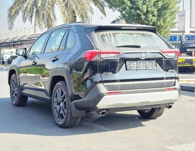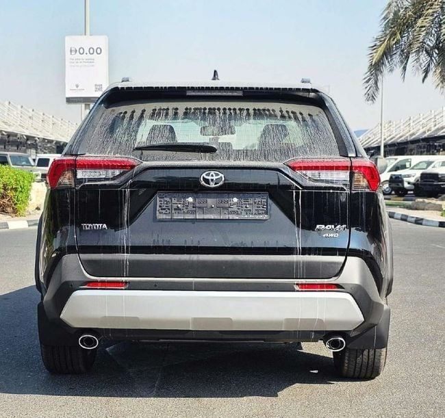 New 2025 Toyota RAV4 V (XA50) in black, a five-door SUV that combines practical space with a clean, modern silhouette. It is powered by a 2.5-liter petrol engine delivering 199 horsepower, paired with an automatic transmission and all-wheel drive for confident performance in a range of conditions. This GCC-spec variant is tailored to regional needs, delivering a quiet, comfortable cabin with ample cargo space for daily use and weekend trips. Inside, you’ll find a well-organized layout, supportive seating, and contemporary technology that enhances convenience on the road. Th