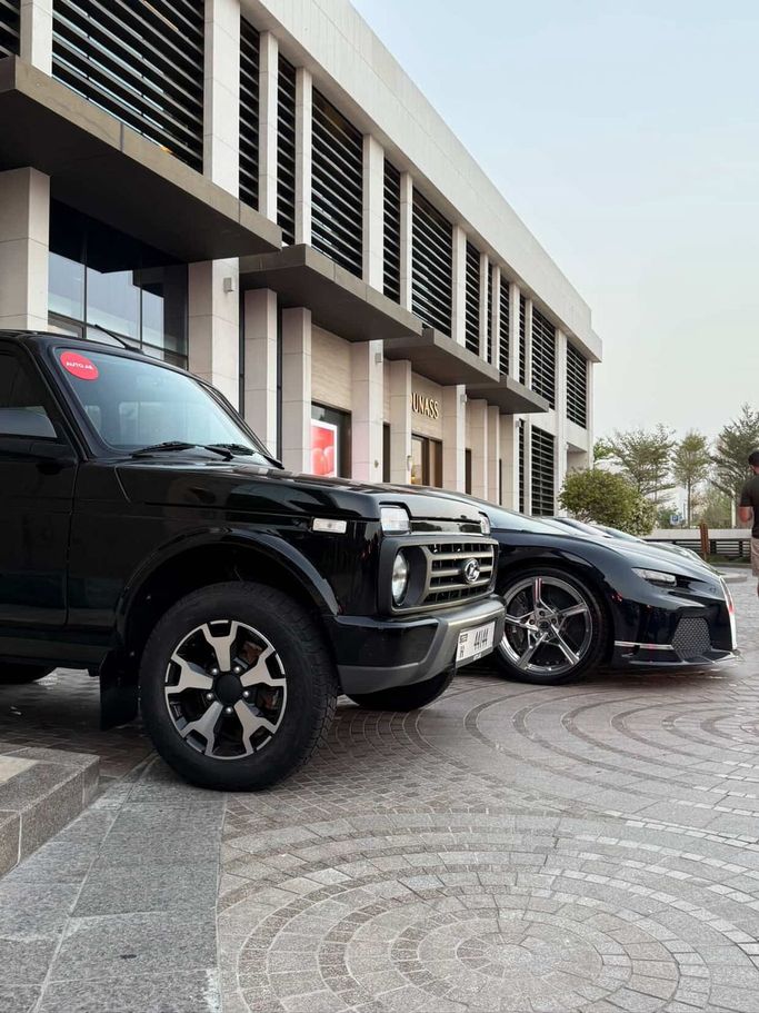 The Niva suddenly feels like the perfect car here — simple, honest, full of character. Feels like it was made for Dubai in this weather.