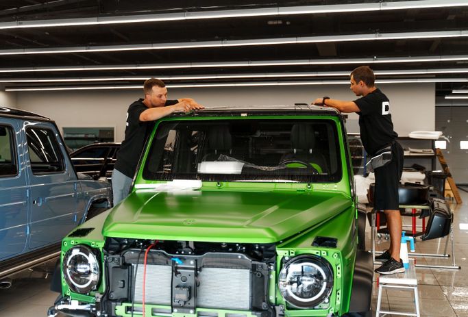 DEIZ GARAGE provides the pinnacle of paint protection services for the Mercedes-AMG G63, focusing on invisible preservation and flawless aesthetics. This specific project involved a full-vehicle PPF wrap following a complete disassembly procedure. Removing trim, handles, lights, and emblems is not standard practice, but for us, it is essential to achieve a seamless, "factory-installed" appearance where the film wraps completely around every panel edge, leaving no exposed lines or potential lifting points.