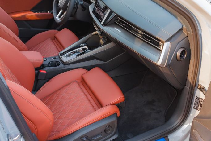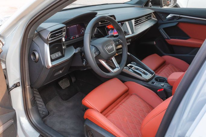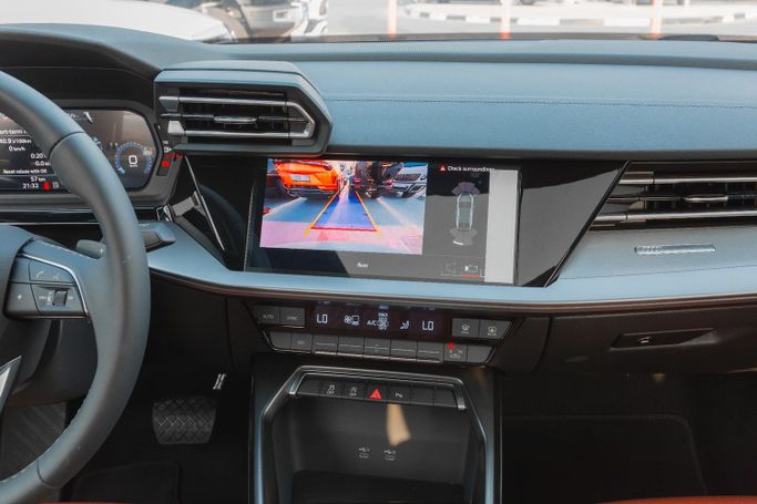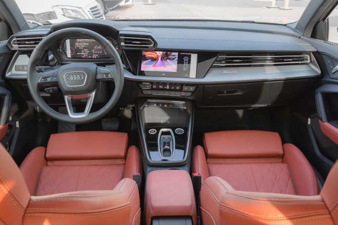 Audi A3 1.5T 35 TFSI S-Tronic Sedan 2025 Performance Engine: 1.5T TFSI Turbocharged, 4-Cylinder Horsepower: ~150 hp | Torque: 250 Nm Transmission: 7-Speed S-Tronic Automatic Drivetrain: FWD (Front-Wheel Drive) Acceleration: 0–100 km/h in ~9.2 sec Fuel Consumption: ~6.5L/100 km Exterior Highlights Large Singleframe Hexagonal Grille LED Headlights & Taillights with DRLs 18-Inch Sporty Alloy Wheels Sunroof Chrome Accents with S-Line Styling Bang & Olufsen Premium Sound System Tan Heated Leather Seats with Electric Adjustment Safety & Driver Assistance Adaptive Cruise Control A