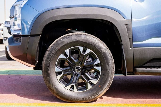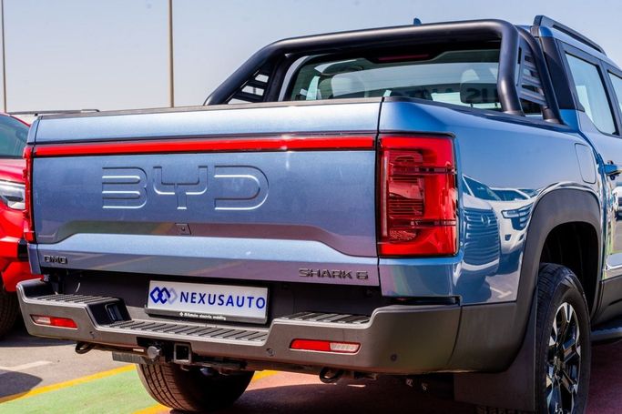 New for 2026, the BYD Shark double cab pickup brings a capable, well-rounded package to daily work and weekend adventures. It runs a 1.5-liter hybrid powertrain producing 435 hp, with electric assist delivering strong, confident performance while optimizing efficiency. An automatic transmission teams with all-wheel drive to provide steady traction in a variety of conditions common in the GCC region. The blue exterior presents a modern, purposeful look, while a roomy crew cab and practical bed layout prioritize everyday usability. Inside, the cabin blends comfort with techno