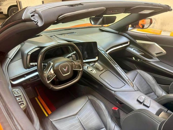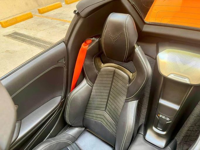 The 2022 Chevrolet Corvette C8 Convertible presents an extraordinary blend of performance and open-top thrills, powered by a 5.5-liter V8 that, in this ZR1-inspired setup, delivers an eye-catching 1064 horsepower through an automated manual transmission. With a striking orange finish and rear-wheel drive, this GCC-spec example maintains a focused, high-performance character while offering the unique joy of open-air driving in a mid-engine chassis. It’s a one-owner car with about 64,430 km on the clock, combining provenance with a ready-to-impress stance. The AMT shifts are