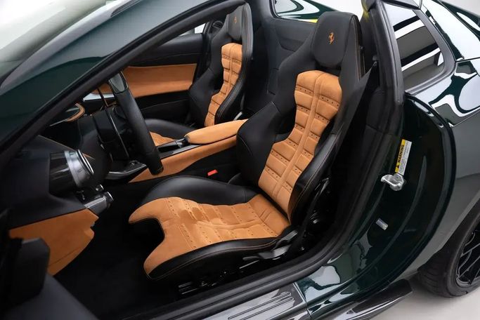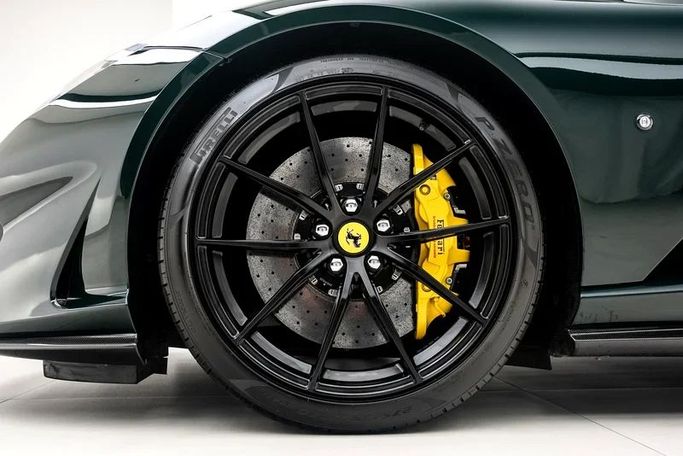 *ADAPTIVE HEADLIGHTS WITH SBL FUNCTION *SUSPENSION LIFTER *CENTRAL PART OF SEATS IN ALCANTARA *CAVALLINO STITCHED ON HEADREST *ALCANTARA DOOR PANELS *BLACK TAILPIPE TIPS *BACK RADAR *CARBON FIBRE FRONT SPOILER *BLACK AIR VENT GRIPS ON DASHBOARD *ADDITIONAL COLOURED MATS WITH LOGO *YELLOW BRAKE CALLIPERS *HOMELINK *REAR SIDE BUMPER IN CARBON FIBRE *'SCUDERIA FERRARI' SHIELDS *CARBON FIBRE UNDERDOOR COVER *PASSENGER DISPLAY *CARBON FIBRE DRIVER ZONE+LEDS *FERRARI HISTORICAL COLOURS VERDE BRITISH RACING *CARBON FIBRE CENTRAL BRIDGE *YELLOW REV. COUNTER *EXTERIOR SILL KICK IN C