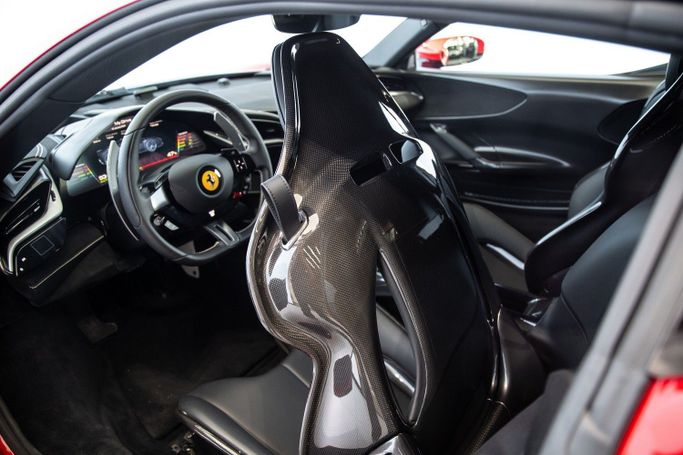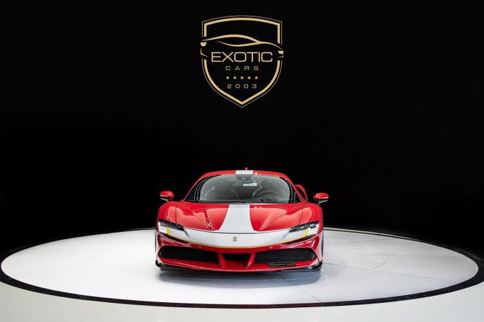 Exotic Cars Dubai proudly presents an awe-inspiring used 2022 Ferrari SF90 Stradale Assetto Fiorano, a marvel of Italian engineering and design. This exceptional supercar, adorned in a classic red exterior with a striking silver stripe, is a testament to Ferrari's legacy of speed and elegance. The black interior, complemented by extensive carbon trim, adds to its sporty yet sophisticated appeal. This SF90 Stradale Assetto Fiorano is the epitome of high-performance luxury, tailored for the most discerning enthusiasts. A Fusion of Style and Performance: The red exterior of th