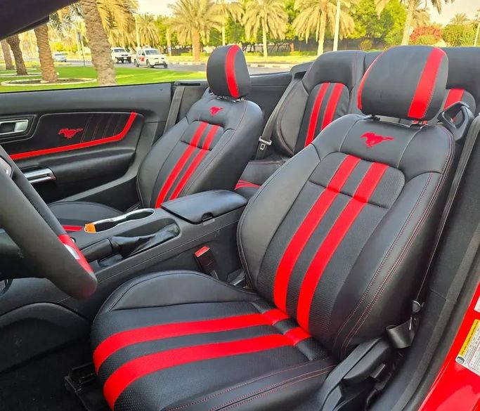 This 2023 Ford Mustang VII Cabriolet sits in a striking red finish with a refined sense of performance and everyday usability. Powered by a 2.3-liter turbocharged petrol engine delivering 315 hp, it pairs rear-wheel drive with a smooth automatic transmission, offering an engaging drive character while maintaining comfort for daily use. With only one previous owner and 36,900 miles, the car presents a well-maintained balance of freshness and practicality. The American-spec, rear-driven layout underpins confident handling, and the convertible body adds open-air appeal without