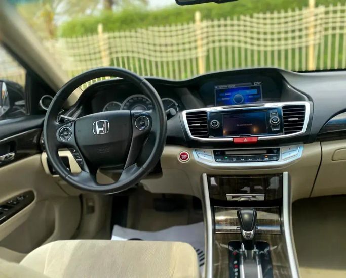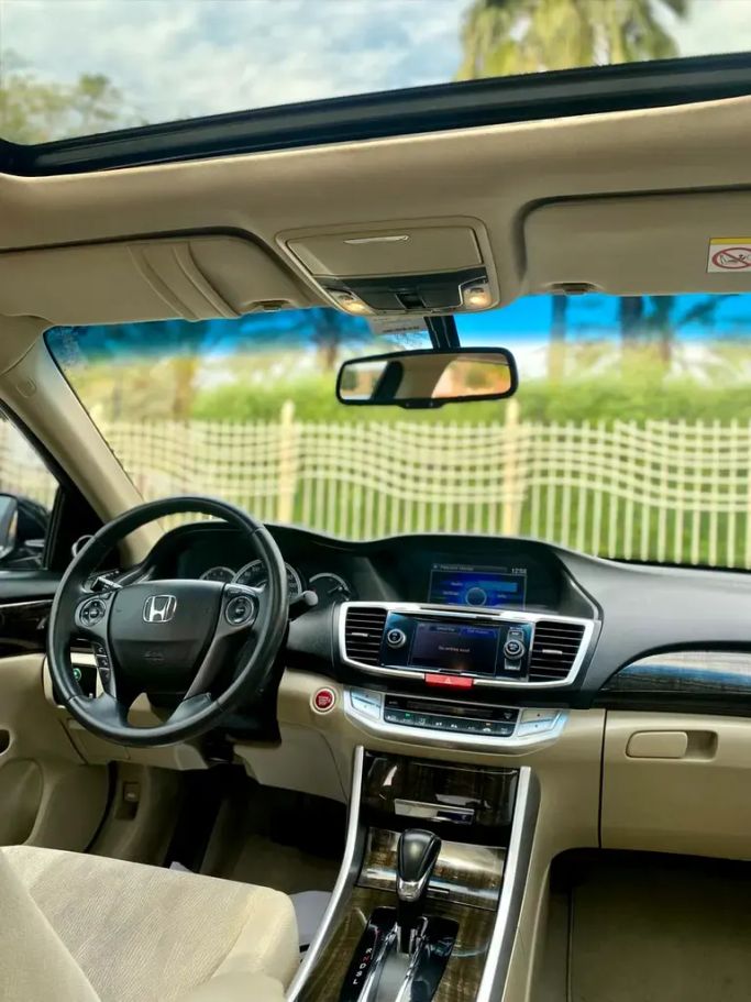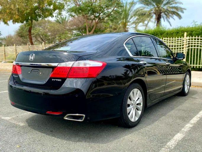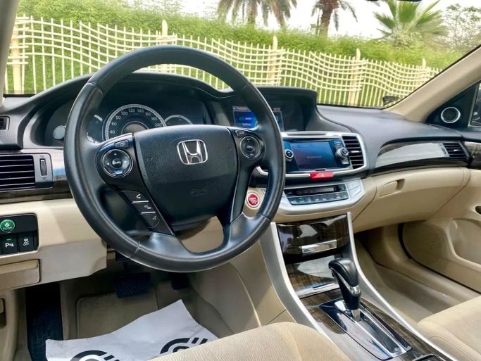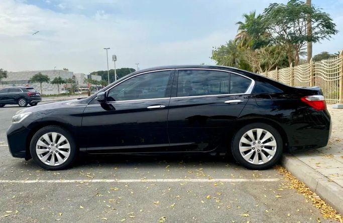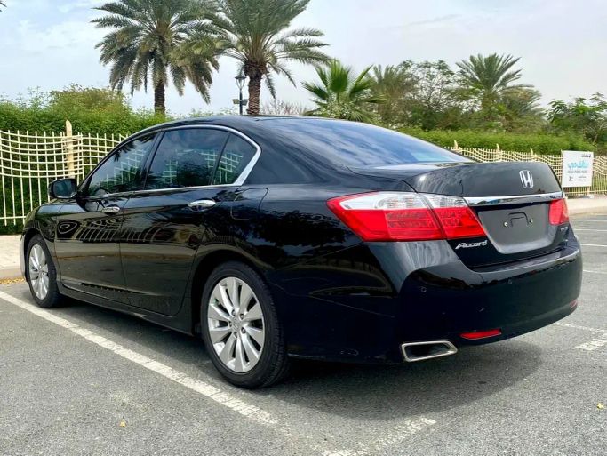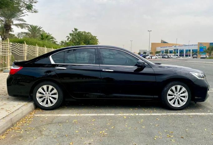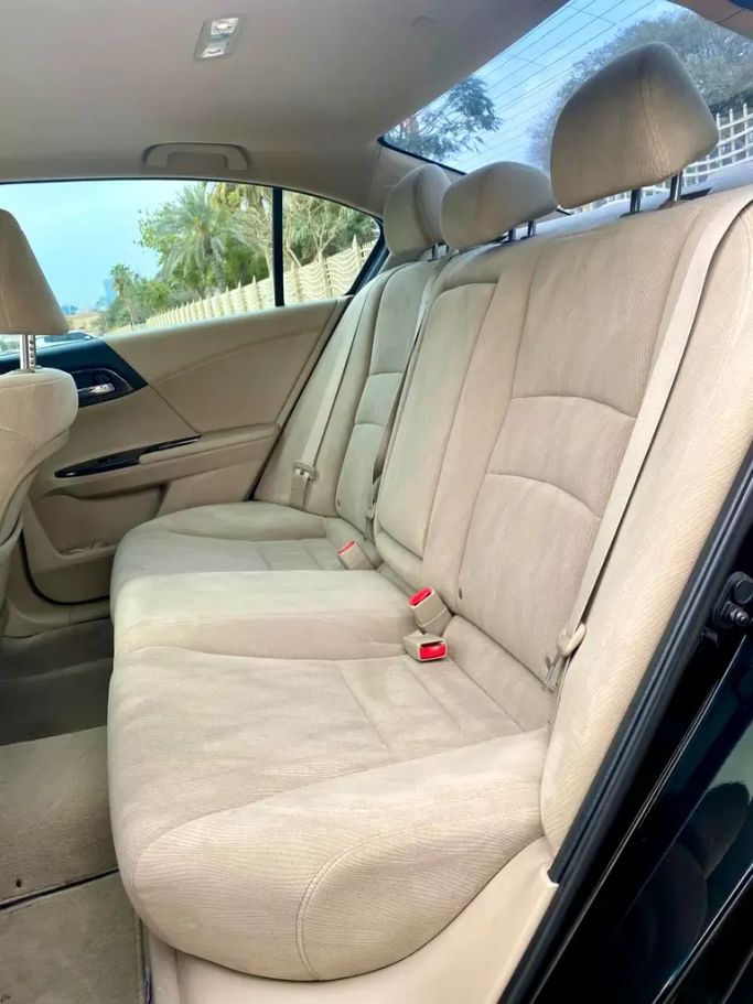 This 2015 Honda Accord VIII Facelift in a sleek black finish presents as a well cared-for sedan with a single previous owner and GCC specifications, powered by a 2.4-liter petrol engine delivering 200 hp through an automatic transmission to front-wheel drive. With a balanced mix of comfort and practicality, the sedan offers a composed ride, supportive seating, and refined cabin materials that suit daily driving and longer trips alike. The 2.4-liter engine provides confident acceleration for its class, while the automatic gearbox delivers smooth, predictable shifts. The exte